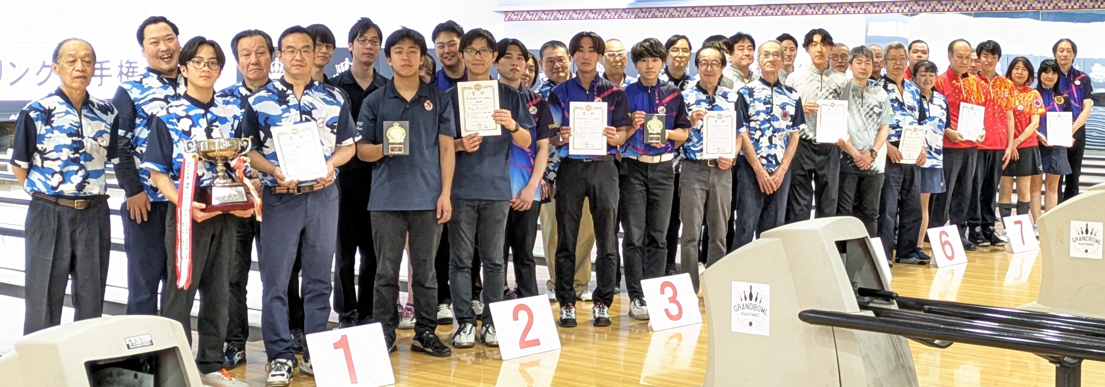 (クリックで拡大)成績表 優 勝 大田クラブA(本多裕典 石井喜俊 松原聡 森野丈栄 小原央士) 準優勝 立川クラブA(高橋亜子 新穂隼人 宮嵜義弘 熊沢颯 田窪一翔) 第3位 オークラクラブA(松野琴美 濱田暖 小川諒也 飯島祥行 小原楓雅) 第4位 大田クラブC(清水規文 塩瀬昭 青木伸顕 森野清一 渡辺宰士) 第5位 港クラブA(木内大介 大塚鷹美 高橋陸 黒田亜剛 佐古健太郎) 第6位 大田クラブB(森野華世 富山幸雄 成海皇基 鈴木成之 池田伸二) 第7位 トミコシ・マルアイクラブC(伊藤悠希 笠松真広 古性春美 松尾邦俊 長谷川博) 第8位 オークラクラブB(小堀大地 坂本朱里 石田千穂 石田隆 岸ア大知) チームH/G オークラクラブA 1,216 ベーカーH/G 大田クラブA 298 男子H/G 宮嵜義弘(立川クラブ) 297 女子H/G 松野琴美(オークラクラブ)276 |
